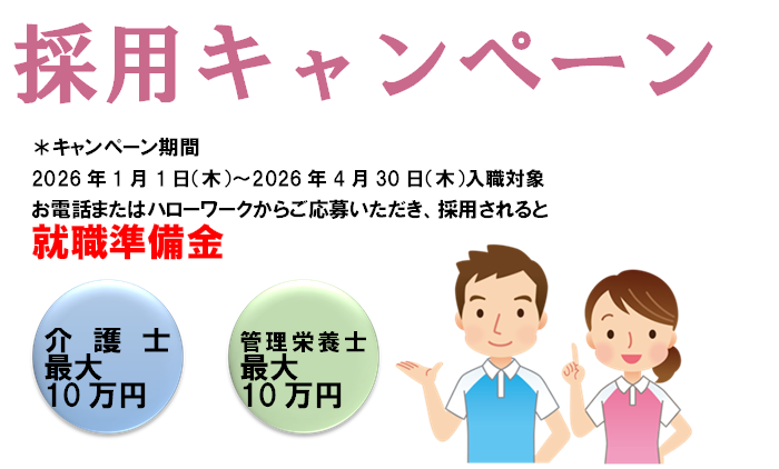 ・管理栄養士2名 入職祝・準備金最大10万円 ・入社日から2週間後2万円、入社日から3月後3万円、入社日から6月後5万円